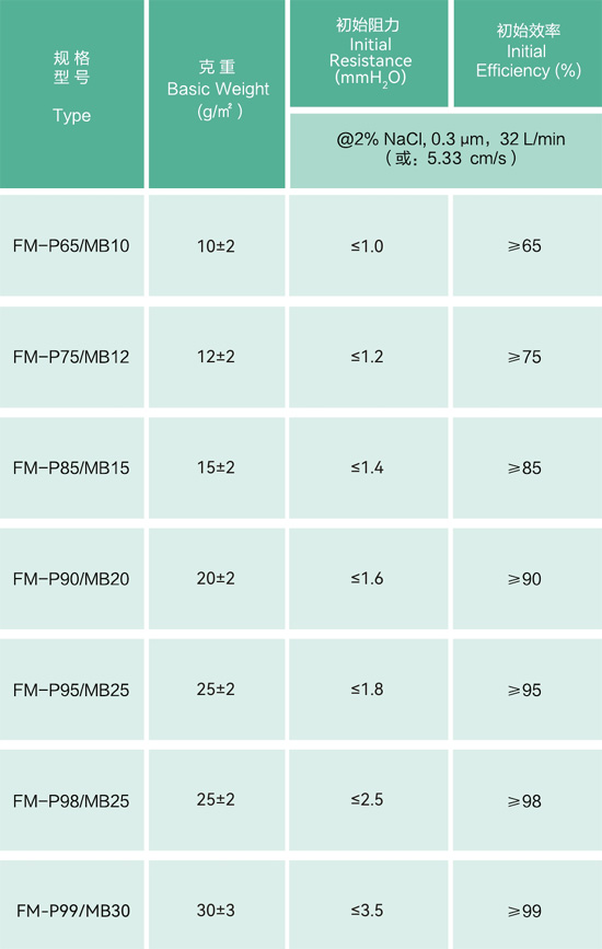 新風(fēng)過濾材料技術(shù)參數(shù)表